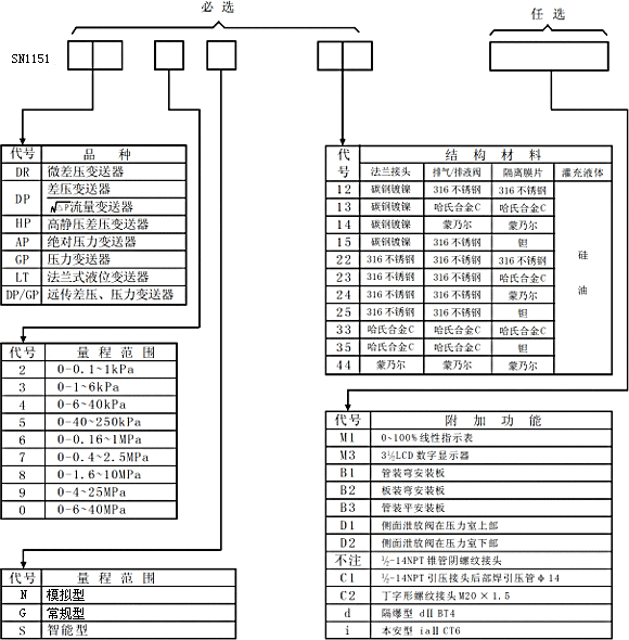 SN1151系列电容式变送器是我厂引进国外先进技术和设备,关键原材料、元器件和零部件均采用进口,整机经过严格组装和测试。具有设计原理先进、品种规格齐全、安装使用简便(规格、尺寸与原装1151完全兼容),外形美观等特点。最近研制开发出来的S智能系列更是一种适合我国国情的智能式变送器,有很强的使用价值。同时,该系列产品已完全覆盖我厂原来生产的WS系列变送器,是该系列的升级产品。目前该系列产品已广泛应用于石油、化工、冶金、电力、食品、造纸、医药、机械制造等行业。