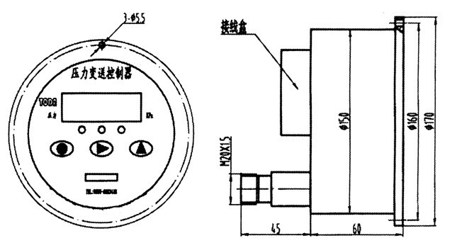 智能压力变送控制器是采用德国原装进口压力传感器,集压力值显示、压力信号变送4~2mA、继电器控制三种功能于一体,适用温度-25℃~85℃,弱腐蚀性的气体、液体压力测控。